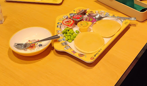 We found this place after leaving Sapporo city to go towards lake toya. There is a covered parking space behind and its 2 hours free parking if you dine in the restaurant (remember to take a ticket from the restaurant before returning to the car for scanning). There was a language barrier but we could adequately ordered our meals when we change the tablet language to english. Food was served very fast and our kids absolutely love the pancakes meal which has a tube of chocolate sauce for you to draw as you wish on the pancake. The food was generally ok for the price and ambience (high chair and ample seating available). Food is served by robot server which appeal to little kids. In general a good place to dine in with family if you are not fussy. We were genuinely surprised (due to earlier language barrier) when our server return with a short memo on how to claim the carpark and even wishing us a good...