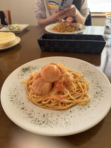 なんで値上げしてない!!? パスタランチは今でも1000円税込なんですね!!!ホタテ大きいの3粒も乗ってるのに…?? そりゃ美味しくて飲み物2杯ついて税込1000円で済むなら人気出るわ!!! 忙しすぎるのも困るって以前言っていましたが…そりゃ人気出るわ!!!!(2回目)