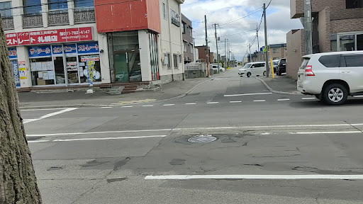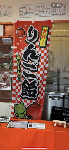 場所がちょっと分かりにくい可もしれません。ストレートという工具屋さんの奥にあり、りんご飴ののぼりが目印。