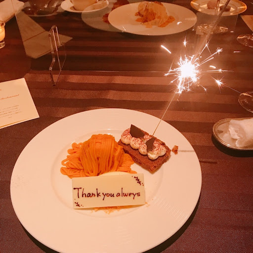 結婚記念日でフルコースディナーを利用しました。料理のレベルは高くどれも美味しかったです。でも気になる点がいくつかありました。 ・フロアスタッフが厨房に「ハッピーバースデーの!」などと指示する声がフロアに丸聞こえ。その後しばらくして後ろのテーブルにお誕生日ケーキが運ばれていましたが、サプライズだったとしたら台無しになったのでは? ・私も記念日ということで夫へのサプライズでデザートプレートを用意していただきました。最初にお隣の別のテーブルに「お連れ様よりメッセージをお預かりしています」と言いながらプレートが運ばれていたので、次はこちらかな?と思っていたら夫の前に無言でプレートが置かれました。そのせいで夫はサプライズに気づかず。 夫のプレートにだけ花火が立てられていてメッセージを添えてもらったのですが、私がそれとなく伝えると「2つ同じのが来たのかと思って気づかなかった」と。 なぜこちらには隣のテーブルのように伝えていただけなかったのでしょうか? ・しかもお願いしていたデザートプレートのスペルが間違っていて夫に苦笑いされました。”Thank you...