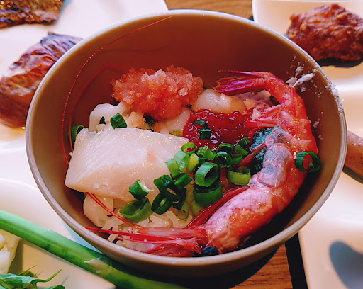 海鮮丼は刺身やペーストをのっけた後、巨大な甘エビをドン!かけるお醤油は様々な種類が陳列されており、牡蠣や帆立のお醤油なんてものもありました。トマトベースのスープカレーも美味しかったな。