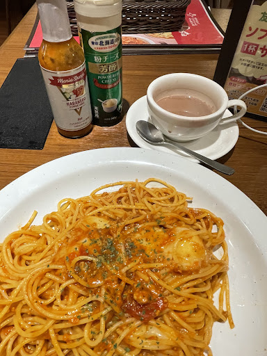 Varieties of spaghetti choices with smoke free tables. I really like their cheese and spicy sauce which are delivered to your table whatever you order. Try your spaghetti as it is first. Add some cheese and sauce afterwards. You can enjoy differences. Portion might be large for small eaters. They have lunch time discounts that offer a spaghetti dish for about 1,000yen. The selection is a little bit limited, but not few. Recommend to download their app to get a gift drink. The voucher is valid for a year and updated automatically. You can use it anytime even if you order one of the lunch time...