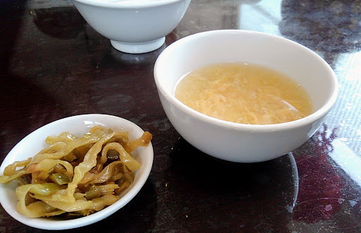 をオーダーし暫し待つ間サービスの【中華粥】と【ザーサイ】を味わいながら待つ…このウォーミングアップ粥とザーサイがまず美味しい♪