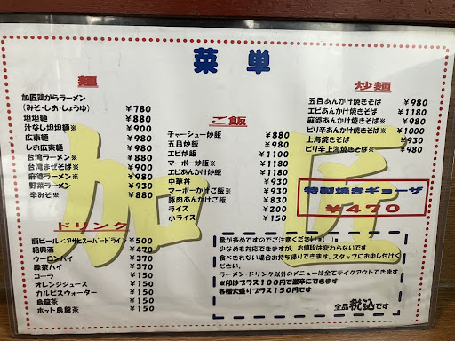 なんでも、先代のご主人が亡くなり、息子さんが跡をついたらしいです。 もうすぐ午後1時というのに、私の後から2人連れのお客さんが3組も入ってきました。 頼んだのは、五目あんかけ焼きそば、坦々麺、醤油ラーメン、タンメンとバラバラですが、なかな...
