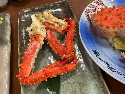 On our last day in Hokkaido, we hit up this legendary seafood spot that’s been around for 75 years. Stepping inside felt like traveling back in time—old-school wooden decor, vintage vibes, the whole deal. We went straight for their famous baby king crab, and man, it did NOT disappoint.