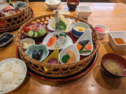 結局頼んだのは吉里吉里御膳です。 が、こちらもメニュー写真ではわからないくらいボリュームがありました。お刺身は鮮度抜群で、天ぷらもサックサク。煮物も優しいお味だし、いつもなら自分で買って食べない昆布巻きや、いかとほっきのサラダなど、色々ちょこちょこ食べたい方にはピッタリです。デザートは乗り切らなかったようで、別に来ました。 ただ、白米の量が多いので、少し減らしてもらうとか半分にしてもらうとかす...