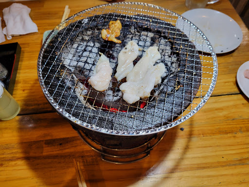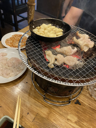 七輪で焼くスタイルで炭火を使ってるようです。 ビール・・・少し臭みがある。洗浄してるのか甚だ疑問である。 豚サガリ・・・こま切れのように小さめ。食べやすいが、中まで火を通して焼くと固い。食中毒になりたくないのでウェルダンで焼いた結果ですが。 大安ホルモン・・・薄く切ってあり食べやすい。味噌は頼んでないが、塩なのに味がない。卓上にある塩を少しつけたほうが良い。 シロコロホルモン・・・少し大きめ。中までじっくり焼くのに時間がかかる。美味しいとは言えない。 上カルビ・・・しゃぶしゃぶのように薄すぎる上に形成肉かと思うぐらい、深い味わいではない。これじゃカルビ。上ではない。 ライス・・・普通。 ナムル・・・これも美味しいか?と思うとそうでもない。独創性が感じられない、素朴な味。