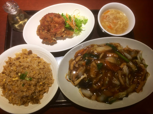あんかけ焼きそばは、濃厚な濃い味付け。麺は芯が残ってる?硬めで小麦粉っぽい味がしました。これがここのスタイルなのかな?単に火の通りが不十分な感じがした。 餡の中に麺を潜らせて餡の余熱で麺に熱を通したら食べれるレベルになったので良かった。 具材は盛り沢山で、他店ではあまり見ない大根の薄切りが食感が良くて美味しい。 濃厚だが美味い!白飯が欲しくなる! 炒飯も、濃い味付け。どんどん箸が進むほど味がしっかりしていて美味しい!炒飯をおかずに白飯が食べれる⁉︎ ザンギは、ほんのりとニンニクの香りがして香ばしい衣で、中はジューシー。ご飯のおかずでもビールのツマミでも、どっちでもイケるザンギでした。でも、ちょっと火の通りが足りない感じがする。中がピンク色でギリギリな感じした。 何れもこれも美味い!だけどそれぞれ濃い味付けなので、セットで食べると味がケンカします。仲介役に白飯が食べたくなりました。