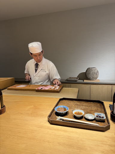 What stood out most, unfortunately, was the lack of interaction from the Chef. We are no strangers to fine dining in Japan, and we were polite, punctual, and followed every rule, yet over our 3-hour meal, the Chef never once engaged with us, despite having better English than many high-end chefs we’ve encountered in Japan and better than his young assistant, who served us most of the time. The assistant was very friendly but struggled with English and occasionally had to ask the Chef for help. With only eight counter seats—five Japanese speakers and the three of us English speakers that night—it was awkward and glaring that the Chef spoke ONLY to Japanese guests the entire time while preparing dishes right in front of us, never once even asking how we were doing.