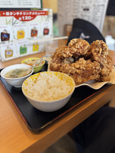 じゃらん4月号に掲載されたからか11時半過ぎに行きましたが駐車場はすでに満車でした 道路に面した所と横の細い道沿いの2つ入り口がありますが、細い道沿いの方が入ってすぐなのでわかりやすいです 相変わらず一つ一つがでかくて通常サイズの4倍はあるので食べごたえ抜群です。ザクザクした衣にしっかり味がついてますが肉の旨味も感じられてご飯にも野菜にも合う万能な唐揚げです じわじわ値上げされていますがこの値段でも買って良かったと思える程の満足感を得られました
