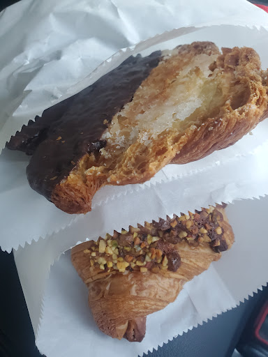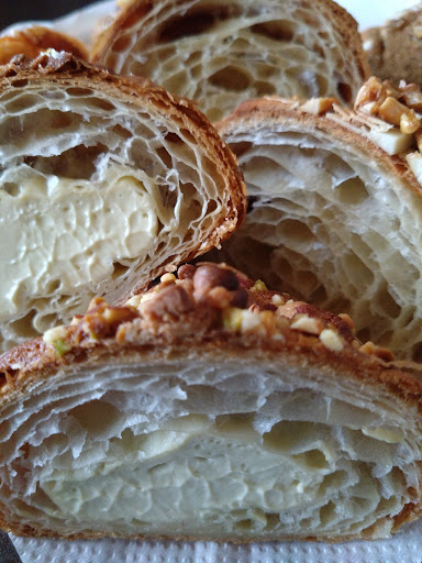 Read more平日昼過ぎに何度か訪れてもいつも普通のクロワッサンは品切れ。人気店だから午前中に売り切れるのはわかるけど、毎回売り切れているともう食べなくてもいいかなと思ってきますね。 無いものは仕方ないので、味の確認と思い気の進まぬままカスタードクロワッサンを一つだけ買いました。 すぐに車の中で食べたのですが、びっくりするくらいしなしなでクリームから遠い一番先端でもフニャっとしていました。 カスタードクリームも良く言えばあっさり食べやすい、正直に言えばバニラエッセンス&低脂肪乳で作ったようなうっすい味でした。もしかしたら子どもは好きかもしれませんが、大人が満足するカスタードではない…。サザエのおやきのカスタードのレベルくらいは超えて欲しかった…。 クロワッサン生地も小麦の味もバターの風味も全く感じられず。