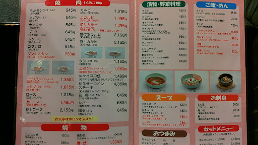 メインから一本入った場所にあるせいか土曜の夜もそれ程こんではいませんでした。車は前に5,6台停められます。入ってすぐに後悔したのは、煙がモクモクで換気扇は天井に付いている凄く古いタイプだった事。途中から目が痛くなってきました。 椅子席と小上がりがあります。小上がりも掘りごたつ式なので楽です。 炙りカルビは本当に薄くて焼くと縮んで凄く小さくなります。ポン酢のようなタレで食べるのでさっぱりしています。ホルモン、ガツ、牛タン、豚トロのセットは美味しかったです。ただ牛タンは厚切りで切れ目が入ってないのでなかなか飲み込めないです。焼肉のタレは甘めと塩レモンぽいのの2種類でこちらも味が薄め?であっさり頂けます。なのでお肉の味がはっきり感じられますが、ちょっと物足りなさもあります。にんにくやコチュジャンがあれば良かったかも…口コミで見た牛タンウィンナーは期待したのですが、ウィンナーというのもよりサラミのようでした。 馬刺しと桜ユッケあります。私は食べませんでしたが馬刺しは生姜がたっぷりで臭みはなく美味しかったそうです。お値段は安くはないです。 タカトシさんが来てTVで紹介...