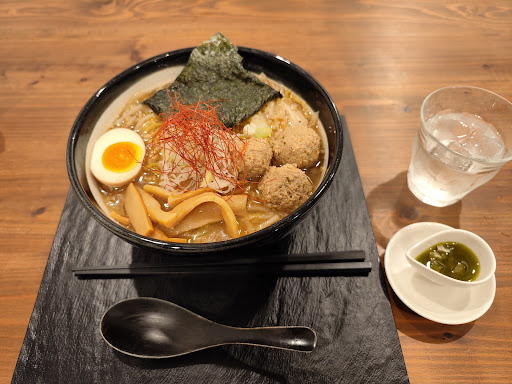 Read moreまず店内の雰囲気は凄いオシャレ。かと言ってラーメン屋っぽくないって感じではない、ラーメン屋さんっぽいのにオシャレなお店です。 なので男1人で来てもデートで来ても全然オッケーなお店の雰囲気です。 ただやや店内が狭めなので、5人以上の来店は入れますがバラバラで食べることになり難しいかも。 味噌ラーメン大盛り食べました!凄い美味しかったです! すみれ系とは違う味わいの味噌味ですが、私の中では1番美味しかった味噌ラーメンかもしれない! 麺は太ちぢれ。ツルツルで程よいコシのある麺で私の1番好みの麺。麺に何か練り込まれてるのか茶色のツブツブが見えます。 スープは私の舌では何が入ってるかわからなかったけど、かなり濃いめですが、動物臭さ、脂臭さ、野菜の苦さなど、変な臭みが全くなく、濃いけど気分良く味わえる感じでした!(伝わりづらくてすみません) 具材も1つ1つが美味しい、かつ麺とスープにあっていて素晴らしい。 ラーメンには亜種となるつくねですが、これまた凄い美味しい!ラーメン凄くあってます!