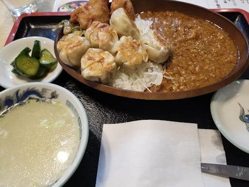 ソコソコ辛い挽き肉カレー(中華カレー?)を、行者にんにく餃子6個と、ザンギ2個に掛ける! ………かなり旨い👍 ………かなりのボリューム👍 ………安い!っと思う👍 ………普通の、カレーっと思うと少し違う。でもカレーを食べた感がある。 ………又、食べたい。 北海道の新しい餃子カレー❗最高です。