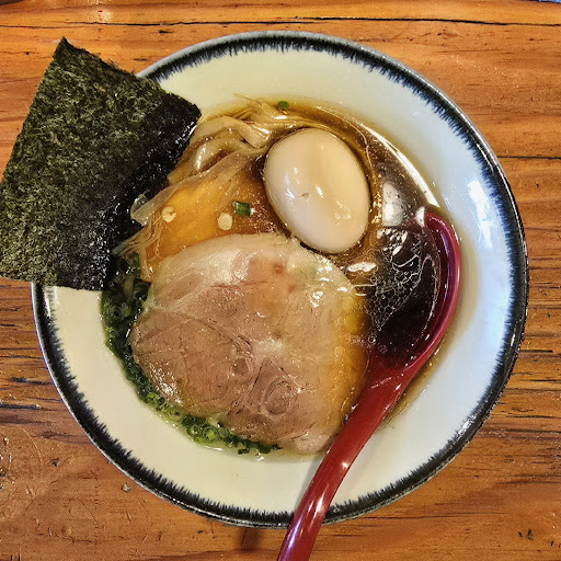 Read moreどうやらGoogleMapの書き込みに全世界的規模で規制が入っていたようで書き込みが遅れましたが先日行ってきました。 このお店は自販機での食券先払い制。 初めてのお店なので、自販機の一番上の段がお勧めなのだろうと考え「丸鶏中華そば塩」を注文。 トッピングなしで注文したのに出てきたラーメンの上には肉2種類(以上?)、ネギ2種類、メンマ、ちじれのりと多彩な顔触れ。大きな1枚チャーシューではなく麺と一緒に口に入れやすい大きさなので「ガッツリ肉!」というよりはラーメンとスープを引き立ててくれる名脇役といったたたずまい。最初からいろいろな種類が載っているので、今回と麺とメンマ、次は麺と白髪ねぎと肉、その次は・・・と組み合わせを変えられるので、味変のために調味料を追加する必要もなく最後までおいしく楽しく食することが出来ました。スープはあっさりとこってりのややこってり寄りかな?鶏の出汁がとてもよく効いていたのでこのスープとチャーハンのセットを食べてみたくなりました。(メニューにチャーシューごはんはあったけどチャーハンがなかったのは残念) 店長さんに一番人気を聞いたところ「鶏白湯醤油」が一番だけれどもほぼまんべんなく出ているとのこと。 個人的に醤油より塩の方が好きなので塩を注文しましたが次回は「鶏白湯醤油」を頼みたいと思っています。 まだ1度しか行っていませんが星5の資格十分です!! 追記2022年3月 再来店。一番人気の「鶏白湯醤油」をLINE登録でもらえる味玉付きで注文。とてもおいしかったのですが個人的に「丸鶏中華そば塩」がツボにはまりまくりだったのでちと残念。他のラーメンもおいしそうだけど次回以降はずっと「丸鶏中華そば塩」を注文...