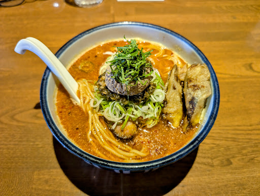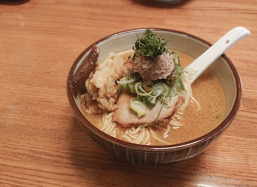 After another rough day of many shops closing on me due to their irregular holidays, I had like 30 minutes to get to this shop in the middle of nowhere before closing time so I took a gamble. Despite my best efforts, I arrived just as they were taking down the noren and got turned away. As I was walking back to the station like a loser, the staff came running after me saying that they could accommodate one more guest 😭 Surprisingly, this ended up being my favorite on this Sapporo trip. It's super rare to see niboshi and miso sharing a stage in ramen but they managed to fuse these two beautifully. What's unique is that they served a dollop of chicken liver pâté amped with more niboshi on top that will gradually alter the taste of the broth as it melts. I think the pâté is delicious on its own too. Additionally, the resulting heavy flavor from the liver was then brightened up with shredded shisho leaves. A very well-thought-out bowl imo! I love the crispy burdock tempura as toppings too. Thanks for saving my Hokkaido ramen...