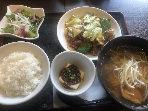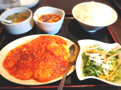 Read more土曜日のお昼時に行ったので既に並んでいましたが、20分程で入れました。 私は日替わりランチ(本日はエビと卵のチリソース)、夫が焼きそばランチと餃子を注文しました。 これでもお値段2000円いかず、とてもリーズナブルですが味は本格的でした! ランチは小皿料理(本日は麻婆豆腐)とサラダ、スープがついていてライス増量無料と嬉しいです。 エビチリ大好きな私は今日の日替わりランチを見てすぐ決めました! ふわとろな卵の上にエビとチリソースがかかっていますが、エビは大きくプリプリで甘くて美味しいです!チリソースはピリ辛なので辛い物苦手な私でちょうどいいくらい、私好みな味で卵との相性も抜群でした。 麻婆豆腐もとても本格的で、スパイスの香りと旨味が濃く、辛さも私でも大丈夫なくらいで美味しくいただけました。辛いもの好きな人には物足りないかも。 餃子も1個貰いましたが、大きい餃子をひと口齧ると肉汁たっぷりで旨味が口いっぱいに広がり幸福感ハンパないです! 食後にはサービスでジャスミンティも出していただいたので(子供にはリンゴジュース)、さっぱりと締めくくることが出来ました。 店員さんもとても温かく、終始満足できる...