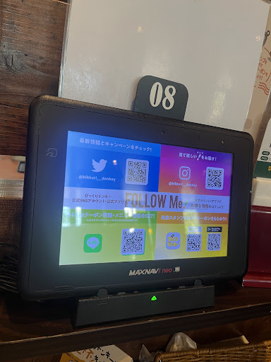 Read more36号線ぞいにあります。この日は近くのラーメン屋さんを食べそこね、ドンキーにしますかと…隣に餃子の王将さんがありますね。駐車場は広く停めやすいです。店内に入ると店員さんが人数を確認し席に通して下さいます。ソファーのようなベンチのような居心地が良いです。タッチパネルから注文。いつもの通りと思うと、何と私がずーっと求めていた、追加ハンバーグソースのボタンが!こちらのお店だけなのか全店かはわかりませんが、1ヶ月弱前に他店に行った際はなかったので新しくもうけられたのでしょうか…もう一つ感動したのがこちらのお店は最初にお箸だけでなくスプーンも人数分入れてくれていて、いつもスプーンをかりる私にとってはとっても嬉しいお店でした。ハンバーグは久しぶりにポテサラパケットディッシュを。安定の美味しさです。本当に嬉しいサービスがありラーメンを食べ損ねたの...
