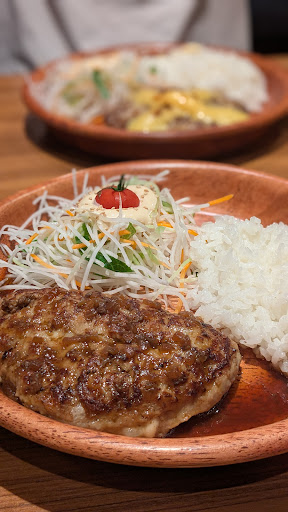 Read more店内に入ると店員さんと目が合ったけどスルーされ、入口の受付機で人数を入力していたところ別の店員さんに「空いてるのですぐご案内します」と言われ、席に着く。 席案内してくれた店員さんが「お水をお持ちします。」と言われたが待てど暮らせど来ない…。 タブレットで料理を注文し、それでもお水は来ないので店員さん呼んでお箸と共に持ってきてもらいました。(おしぼりは無し) 頼んだのはレギュラーディッシュとオムデミチーズディッシュ。 運ぶ機械で商品が到着しようとした時、帰るもう1台の機械とご対面。生温かく見守っていると、商品を持った方が遠回り…。機械の世界でも御局様とか居るのかね?って話してたけど、んな訳あるかー!!とツッコミΣ\(゚Д゚;) 遠回りしてきた商品はなんと私たちの所笑 さっ、食べようと箸を持つも、隣でもレギュラーバーグが運ばれたがあちらにはソースが付いている。こちらには無い…。再び店員さんを呼び、「ソースって付いてますかね?」って聞くと元気よく「あります!!」とお返事。ついでにおしぼりも持ってきてもらうことに…。 なんかこんなコントみたいな事ってありますかね??笑 今後の笑い話にさせていただきます! ハンバーグはいつも通りの美味しさで...