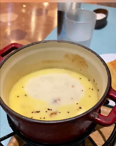 My wife ordered something with cheese fondue which turned out to be a big disappointment. cheese fondue is more like a cream soup without any gooey cheesy at all. The sausage was super small and grilled chicken was like two finger sized, overcooked hard half-boiled egg served with salad which literally just pieces of lettuce and bread crumbs.