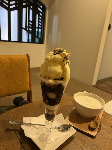 ランチセットの無水カレーを頂きましたが、個人的には本場パキスタン仕込が謳い文句のカレー屋さんの無水カレーより好きでした。 辛いけど美味しいです。 デザートに一番人気のパフェを頼みましたが、アイスクリームの下に、当店自慢というコーヒーゼリーが入っていて、白玉も入っていて美味しかったです。 パスタやトースト、オムライスなどランチメニューが充実していて値段も手頃です。 コーヒーも、酸味好きらしくかなりこだわりがあるみたいですが、今度ケーキと一緒に頂いてみたいです。 ちなみに豆はブラジル、エチオピア、コロンビアなど、やはり酸味が好きな人向きなものでした。