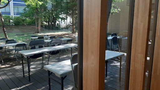 Cafe in the rear of the Hokkaido universitys shop and information center. The cafe has a large air conditioned indoor area and a large outdoor terrace where you can enjoy jingiuskan. The facilities are great and it would be a nice place to spend an afternoon grilling and eating. There is no service. Food is ordered through an app and paid for by credit card or possibly at a register, it wasn't clear. Food is collected from either an inside or outside counter. There were multiple trips to both counters to collect the food as it wasn't clear when the food was ready. Food is served on paper plates or in plastic trays. Drinks come in plastic cups. The...
