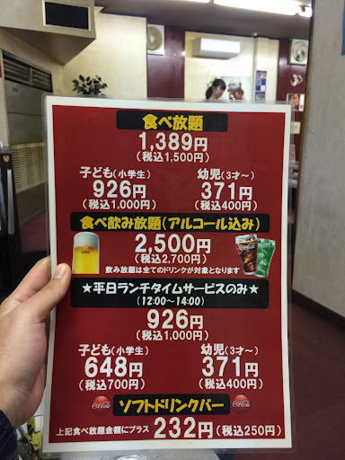 Read more汚いだの、味がそれなりだの、いろんなこと言ってる人いますが、ランチ1300円、ディナー1600円で焼肉が食べ放題の店と言う存在そのものが今の物価高のご時世にかなり貴重な店です。 2022年8月18日から開店40周年記念でランチは期間限定で1000円食べ放題になってます。(1部別料金の肉あり、キャンペーン終了日の記載は無し) 味に文句言う奴は高級焼肉店に行けば良いだけだし、この値段で高いと言うやつは、多分どんなもの食っても高いと文句を言うやつです。 1000円で鼻から出るほど腹いっぱい食べさせてもらえるありがたみを感じられる店が、この世にどれだけ存在すると言うのか、感謝の気持ちを忘れている奴が来る店ではありません。