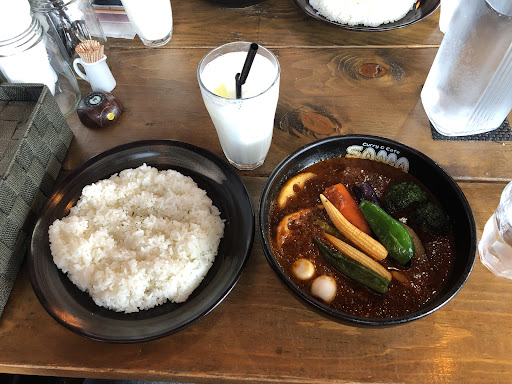If it’s about soup curry, SAMA is the king of soup curries ( for me and friends). On the picture it’s my favorite: tomato based pork curry with more vegetables and more soup option, with awesome lassi, for after this delicious curry. BUT…( 2022 update reduced 5 stars to 1 star) the Sama company introduced a new order system; you can’t just simply go order from menu, pay and go, but need to copy a QR code and order your food by your smartphone ( IF you have smart device, not simple flip flap non smart cellphone) off course in full Japanese! If you’re a foreigner like me , not reading kanjis you’re damned to not be able to order ( it’s about more control, right?) The kind staff they say they will help ( being my Wife with me) , but when I’m alone, I’m not sure I get help….( plenty of previous experience all over this town) . Sorry for reducing the rating dramatically; this new QR code forced system...