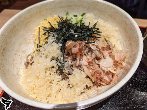 おいらは「豚しゃぶ蕎麦」に無料の天かすと卵、家庭内CEOは「冷やしたぬき」に無料の天かす追加でいただきました。