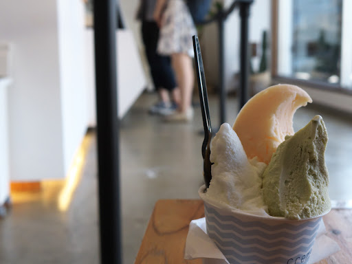 Modern gelato shop offering unusual flavors & seasonal fruit sorbet, plus espresso & bench seating.