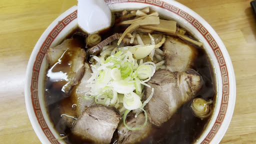Read more旭川ラーメン北龍さん。 旧国道36号線沿い。駐車場がない為、車での訪問難易度が非常に高いお店です。この日は店舗前に路駐車両が2台(1台は店主のものと思われる)もう1台停められそうなので急遽自分も入店することとしました。いづれにしても車での訪問はお勧めできませんね。 店名に旭川ラーメンとうたっていますので醤油チャーシュー麺と小ライスを注文。5分かからず着丼です。 ラーメンそのもののルックスは旭川の蜂屋さんに近いと感じます。しかしスープは強いラードを感じることはないので蜂屋さんとは違うか・・・。チャーシューのルックスは蜂屋さんにかなり近いと感じます。スープもチャーシューの塩味強めです。麺は旭川ラーメンよりはやや太めですが確かにストレート麵。うーん、このラーメンは旭川ラーメンなのか?そういえばお店の看板のベースが濃いグリーン、これって蜂屋さんと同じ色ですね。やっぱり関係あるのかな? 常連さんとの日常会話が飛び交う店内で、一元の私は背中を丸めてラーメンをすするのでした。メニュー表の価格を合計すると¥950なのだが、チャーシュー麺と小ライスをいただいて会計は驚きの¥800でした。激安で...