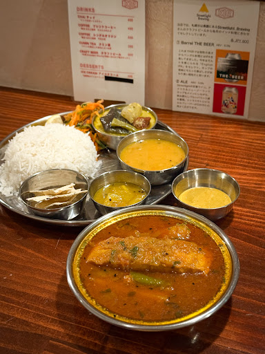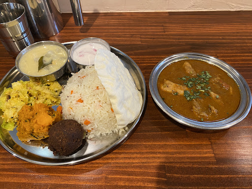 きれいに輪郭のある美しさでインドのカレーがステンレスの硬質な輝きの上に乗せられている この辺りは日本的であると感じられる見た目である カレーや副菜を結果的には混ぜることになるのだが混ぜる采配をこちらに任せてくれているようで嬉しい気持ちになる いわゆるイン・ネパ系カレー屋さんにはないところだろう 料理の味は嫌味やクセのない直球な美味しさである 程よく辛くスパイスの感じる美味しさは誰にでも届くであろう美味しさではないだろうか