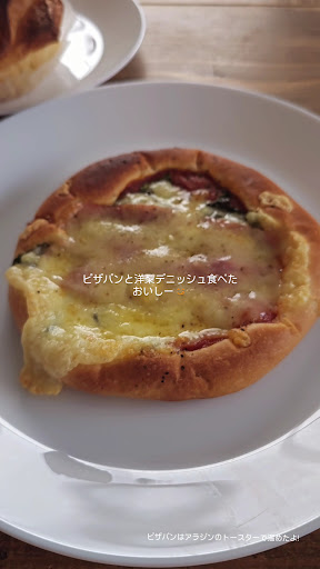 テイクアウトしたピザパンは、トースターで温め直すとチーズがとろけて香ばしさ倍増! 洋梨デニッシュはフルーツのジューシーさとサクサクのデニッシュが好相性で、とても美味しかったです。 角食もふわふわで耳までしっとり、美味しくいただけました。