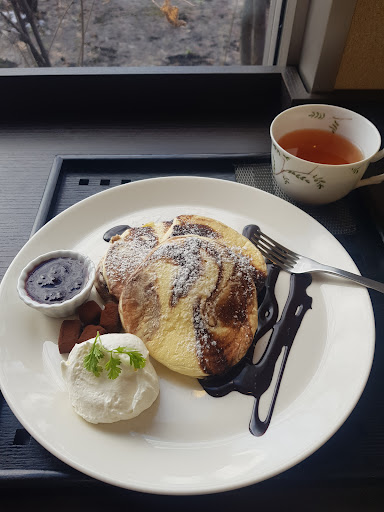 ○食べたものについて… #パンケーキ 米粉100%なのでグルテンフリー(トッピングやメニューによっては混入の可能性がある)。 ふわっとしていて、生地のとろーり感がある。パンケーキ自体の味わいは控えめで、後からじんわり甘味が来る。卵の風味も強くない。クリームは優しく甘い。クリームとパンケーキを合わせるとよりトロリ。 苺と生チョコと言っていたが、苺は兎も角チョコクリームの量は少ない。固形チョコもなし。 量は正直少なめで、少し高いと感じざるを得ない。 #エッグベネディクト 家族が頼んでいたもの。生野菜が良く、また味付けも必要最低限で美味しかった様です。エッグベネディクトは味わいがよくまとまっていて、何かが特に強く出る事もないので食べやすく、トッピングでつけられるオリーヴオイル、バジルソース、トマトがより美味しさを引き立てていた様です。