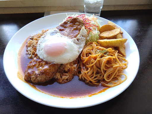 Read more朝9時からぁ開いてるぅ~喫茶店?うんにゃ「喫茶屋」ですってぇ〜♪自家焙煎コーヒーやぁ豆も販売してますよぉ〜! フードメニューもぉ豊富ですよぉ〜ハンバーグ系&パスタ&モーニング系だぁよ! 家内とぉ~お二人様でぇGOですってぇ〜♪私はぁ「ハンバーグディッシュ」通常1100円税込家内はぁ「オムハンバーグ」通常1100円税込ですってぇ〜♪通常?? こちらはぁ大盛&3倍盛メニューがぁ有るからぁ通常メニューがぁ有ります(笑) オムハンバーグのぉオムレツはぁふわトロでぇチキンライスなのぉ!チキン入ってるぅ~!デカイハンバーグはぁ合挽でぇ香辛料少な目だけどぉ肉とぉ玉ねぎがぁベストマッチですってぇ〜♪かなりいボリューミーですってぇ〜♪ 元々大盛でぇ有名なぁお店だけどぉ~! ハンバーグディッシュはぁびっくらこいたよぉ〜(笑)私、テーブルにぃ来た時「何ぃデカイよぉ〜!」と言ってるぅ(笑) なんだかぁデミグラスソースがぁ私達のぉ好みで旨いわぁ!目玉焼きがぁ半熟トロットロ&ナポリタン普通盛?&フライドポテトがぁホクホクで塩加減GoodGood&デカイコールスローサラダがぁ新鮮! お米はぁ道産米!旨いわぁ~♪ しかしだぁ~通常盛だけどぉ私はぁギブアップ?家内はぁ無理してぇだぁ完食(笑) 本当にぃ〜旨いわぁ!旨いわぁ! お年寄りのぉ還暦過ぎたぁ皆様はぁ要注意ですってぇ〜注文はぁ1人1品だからぁシェア出来んよぉ〜♪通常盛注文時にぃご飯...