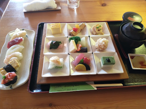 Read more平日にランチへ!3名だったので事前に予約をして行ってみました(◔‿◔) ログハウス調の建物にギャップを感じましたが、しっかり和食屋さんです。私のメニューは口コミの写真を見て気になっていた“旬菜御膳のデザート付き”お寿司が5貫に9品の小皿料理、デザートはぜんざいでした。美味しかったですよーーー(ʃƪ^3^)特に小皿のお料理は目で見ても楽しめる美しさ!和食ってイイですね♡窓からは中の川の堤防が眺められ、桜の時期はキレイだろうな(˘︶˘) 駐車場はカーブになっている橋の手前でちょっと停めづらいかもです。店舗前に4台ほどスペースはありますが、空いていない時は聞いて下さいと言っていたので、何とかしてくれるかも。。。(...