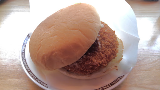 格安な訳ではないが、コーヒーも普通に美味しい。たっぷりシリーズを注文すれば、町中の喫茶店のコーヒーに比べ、それはお得感が有る。 ミルクセーキ等の冷たい飲み物も多数。 ご飯物は無いが、パン類のメニューが多い。 サンドや、ソーセージ等のセット。サラダ。ケーキ等のスイーツ。 『海老カツサンド』は量も多く、美味しい。照り焼き程甘くない『網焼きチキンサンド』は、レトルトっぽいが美味しい。 サンド類は、基本3つ切りだが、人数に合わせて4つ切りにして貰う事もできる。多分、2つ切りも頼めばしてくれるでしょう。