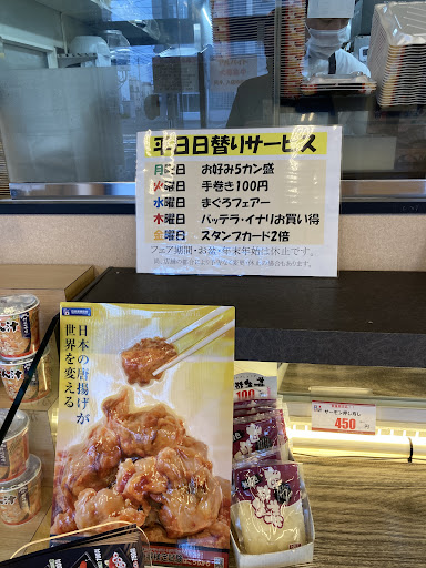 Read moreにぎりたて、巻きたての寿司を持ち帰り出来ます。 最近の回転寿司チェーンはさび抜きが当たり前になっていますが、こちらはデフォでわさびが入ります。 もちろん、さび抜き、わさび多めなどにも対応していただけます。 スーパーの冷え切った生寿司などより格段美味しいと思います。 揚げたての唐揚げも美味しいです。 平日日替り...