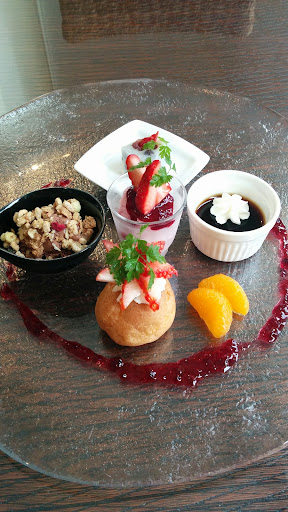 Read moreランチコース(パスタ)食べました。前菜六種盛りはたっぷり水菜の下に六種の魚。ホタテとサーモンと白身魚の組み合わせ。オリーブオイルがちょうど良くて、みんな美味しかった! スープはパプリカとコーンのポタージュ。もっと飲みたい!って思うくらい美味。とろりとした外見に反して、優しい甘さでした。 パスタはサーモンとホウレン草のアメリケーヌソースを選択。初めは味薄いかな?って思ったけど、上にのってるダイスカットサーモンが味濃いめで一緒に食べるとちょうど良かった。 ドルチェ五点盛りすごい。豆大福とコーヒーゼリーといちごソルベとチョコアイスとみかんとシュークリーム。いちご多い!嬉しい! 豆大福に黒蜜かかってて美味しかった!いちごソルベちょっと固かったけど美味。チョコアイスは上にかかってるナッツ類がサクサクで食感楽しかった。シュークリームも美味。