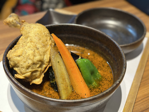 It was the first time for me and my family to try Hokkaido soup curry. We chose the herbal soup with spice level 2 and crispy fried chicken. When the food arrived, it looked so good. The soup was flavorful and well-balanced, the veggies were tasty, and the fried chicken was super crispy.