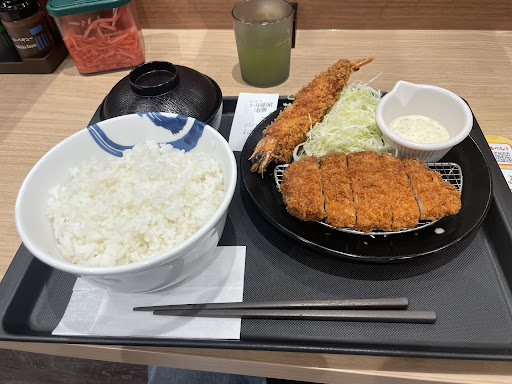 Read more松屋と松のやが一緒になっている店舗です。 店内飲食で、松のやの有頭エビ一本カツ定食をオーダーして待ちます。そして、後からのオーダーの人に何人も追い抜かされても待ちます。その度に順番前後して申し訳ありませんの声は聞こえるのですが、松屋で20分も待たされるのはちょっとイライラします。それでも待ちます。やっと呼ばれたのは30分くらいたってました。あまり頼まれないメニューなのか時間掛かるなら最初に一言あっても良いんじゃ無いかとおもいましたね。それか、呼び出しのディスプレイにお時間掛かりますとかの一言あっても良いんじゃ無いかと思ってしまいました。 味は特筆することはなく、値段もそれなりです。カツも思ったより薄くかつやの半分くらいの厚さしかありません。エビも有頭で時間もかかったので頭まで食べれるくらいカリッと揚がってるのか思ったんですが、そんな事もなくちょっと損した気分でした。次は早く出てくるようなメニュー頼む事にします。こういう所は早く、手軽...