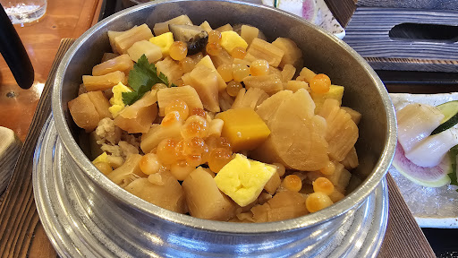 Read moreウーンどうしよう‼️ 最近の釜飯はこんなにオシャレ?自分の中の釜飯屋とイメージが違う(恵庭の有名店もオシャレ) 小さい店舗だが清潔感あり小料理屋の雰囲気(悪くない🎵) 早速釜飯注文 自分は具だくさんの特選五目 相方はアサリ注文するがアサリは本日無いとのことで以前まで 特別メニューで出てたつぶ貝が出来るか確認(本命で無くなってたので仕方なくアサリ選択) つぶ貝で出してくれるとのこと (ありがとー🎵無理言ってスミマセン🎵) 釜飯頼むと茶碗蒸し、味噌汁、漬物、〆の出汁茶用薬味と出汁付き ウーン悪いとこ無し 一口食べて❗旨い❗ 具沢山でゴボウの風味が堪らない優しいがしっかりした味 ご飯も美味しい‼️お焦げもあり 海老も二種にアサリ、鶏、タケノコ、椎茸他旨すぎ 茶碗蒸しは上に餡掛け(葛?) あおさのりと鶏かな?これも旨し出汁無しで全部食べたい🎵が 最後に出汁茶漬け おかわりしたかった 和食としての釜飯堪能 値段はやや高めだが大満足 納得行く旨さ大変美味しく頂きました🎵が旨すぎてお薦めしたくない一店 無理な注文も対応ありがとー🙇