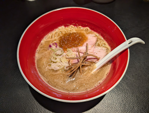 Long time no post. That doesn't mean that I stopped eating ramen, heh. I still have a bunch of notes for the bowls in the backlog that I didn't have time to post. I knew that my trip to Sapporo trip was going to be primarily miso-dominant, so I tried to sneak in some variety in between. I still have mixed feelings about this bowl. It's not exactly what you usually find in a tonkotsu gyokai. While I appreciate that they are setting themselves apart, at the same time, I feel like it's a bit incoherent. I didn't really like the sweet and slightly acidic jelly-like topping. The texture was a bit weird by itself, and it didn't exactly melt into the broth anyway. The noodles were very soft and chewy so I think they used a much lower amount of kansui compared to typical ramen noodles. Menma was also substituted with burdock roots. I think I still prefer the crunch of menma tho. Apparently, Men Eiji has already expanded overseas, but this shop still stands as their...