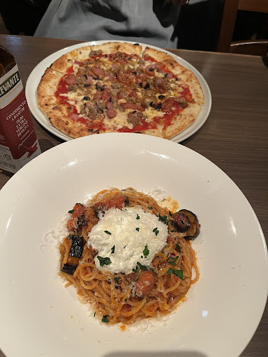 Rustic-chic Italian restaurant offering pizza, pasta, salads, seafood & meat dishes & wine.
