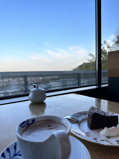 素晴らしいカフェの中で、美味しいコーヒーとスイーツをいただきながら夜景と満月を見られるとは、最高なシチュエーションではないか。 忘れられない思い出...