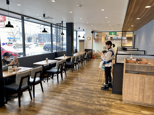Read more【駐車場あり】共用駐車場 北海道初のモスカフェです。2022年にオープンしました。お洒落な店内です。広々としていて、落ち着いた雰囲気です😊。モスカフェ限定のふんわりスフレパンケーキが美味しそうでした。今度食べたいな。 モスバーガーは、日本発祥のハンバーガーチェーンです。1972年に東京都板橋区成増に1号店をオープンしました。国内に1287店舗くらいあるようです。1973年には日本で初めてテリヤキバーガーを販売しました。 モスバーガーは、野菜にこだわっています。国内約3000の協力農家で、農薬や化学肥料に頼らない栽培方法で育てられています。毎日、野菜の産地や生産者が掲示板に明記されています。これは本当に素晴らしいことだと思います😊。 マクドナルドのてりやきバーガーが400円。モスバーガーのテリヤキバーガーが430円。価格にほとんど差がない今、美味しいモスに行き...