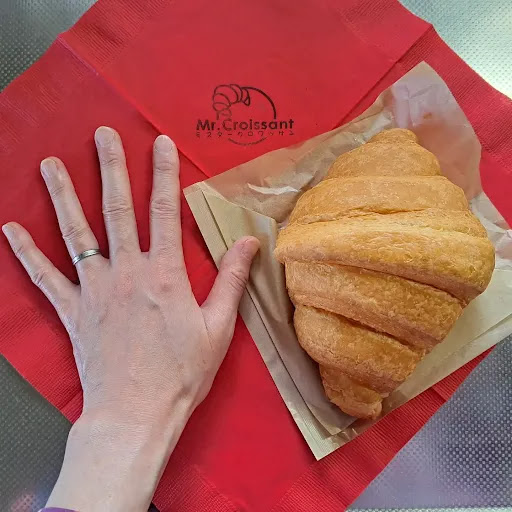 Read moreオープン前から大行列! とてもおおきいクロワッサン専門店🥐 駐車場は3台くらいとめれます。 ご家族で営業しているみたいでとても気さくで明るいご夫婦がお手伝いの方と一緒に迎えてくれました。 種類があってプレーン以外は甘い創作クロワッサンがありました。 きなこやシュガー、チョコ、色々食べましたがプレーンが1番シンプルで好きでした。 ここのクロワッサンはしっとりな感じでした。 その為トーストで温めて食べた方がやはり良いです。 買った瞬間のものはプレーン以外パサパサでちょっぴり残念だったので🥲 お値段も大きい為か結構お高めで250-380円とかだったかな。