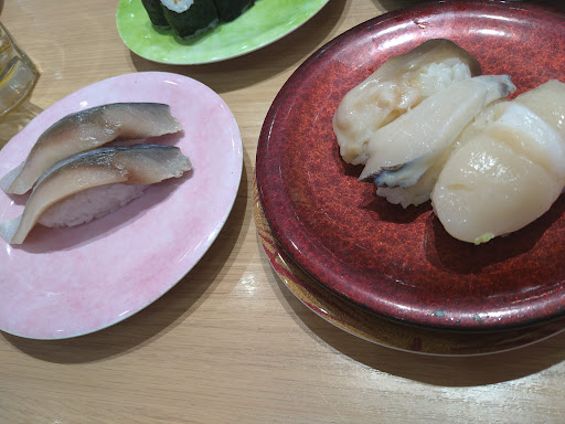 Conveyor belt sushi place with a wide selection of sushi such as egg sushi, natto sushi, eel and clam , and salmon, tuna mackerel , sardines, and conker eel. They count the plates after you are done when you pay.