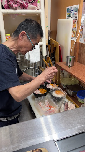 Read moreSmall shop with very limited seating but worth the wait if there is one. Some of the best seafood around the market and better than other donburi shops that we tried. The price is very fair for the quality and the portions. The ikura and uni were my favorite. The kani was a bit diluted but flavorful nevertheless. The chef spends much time and attention to detail in crafting each bowl - really enjoyable to watch from the countertop seat. The owners were extremely friendly, offering us hot tea while we waited a few minutes outside for the next two seats to open. Don’t waste your time elsewhere for donburi -...