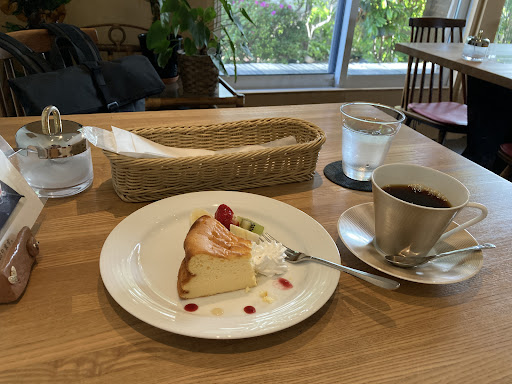 チーズケーキもとても風味良くしっとりと上品なお味でした。 お席から見える木と草花がとても癒される空間で素敵でした。